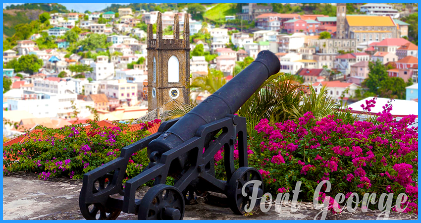 Fort George is located South on the map of Grenada, lays on top of a hill found in the busy city of St. George's. It is surrounded by 360 degrees of breath taking views including a harbor, market, and Grenadian life.